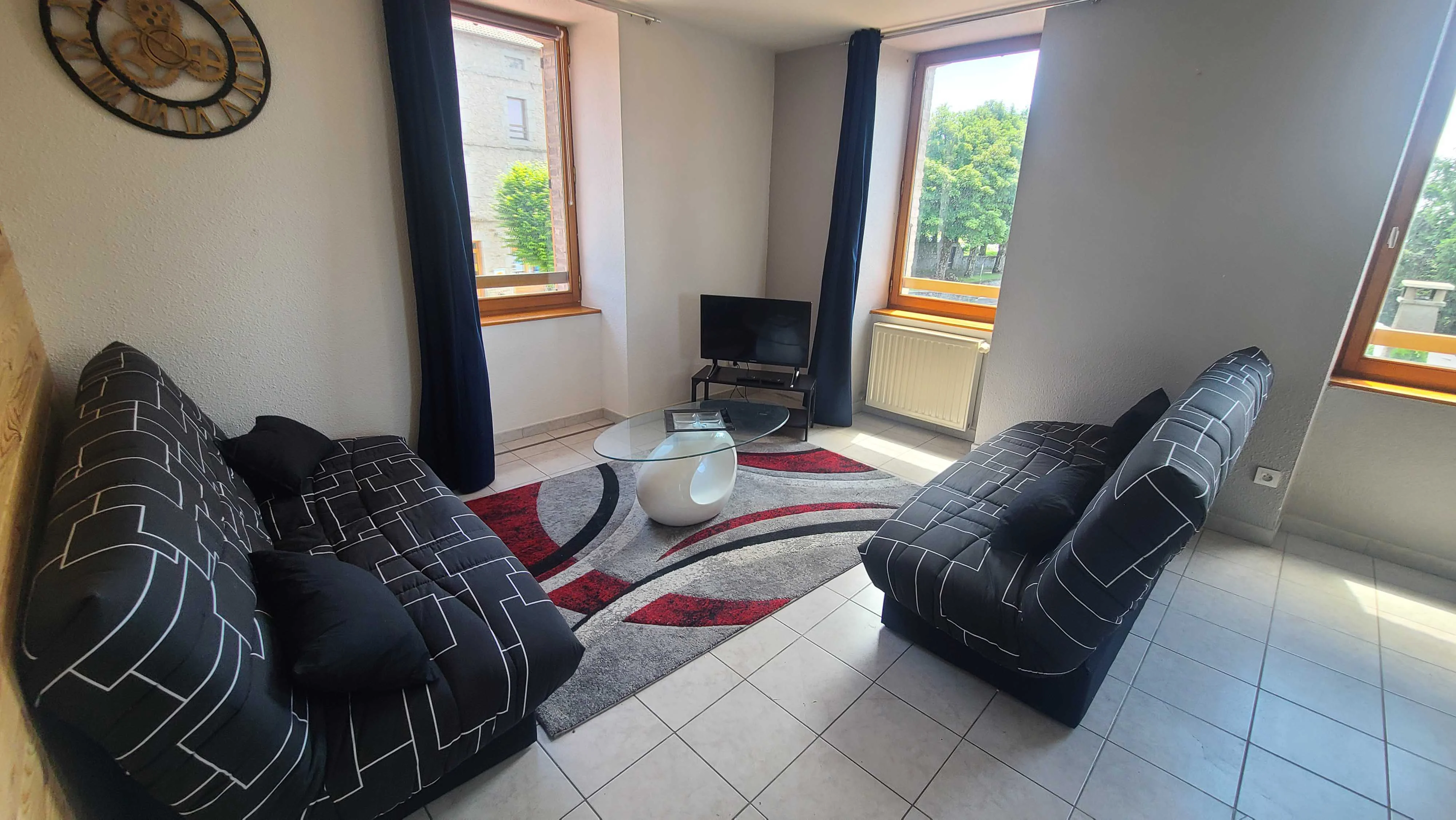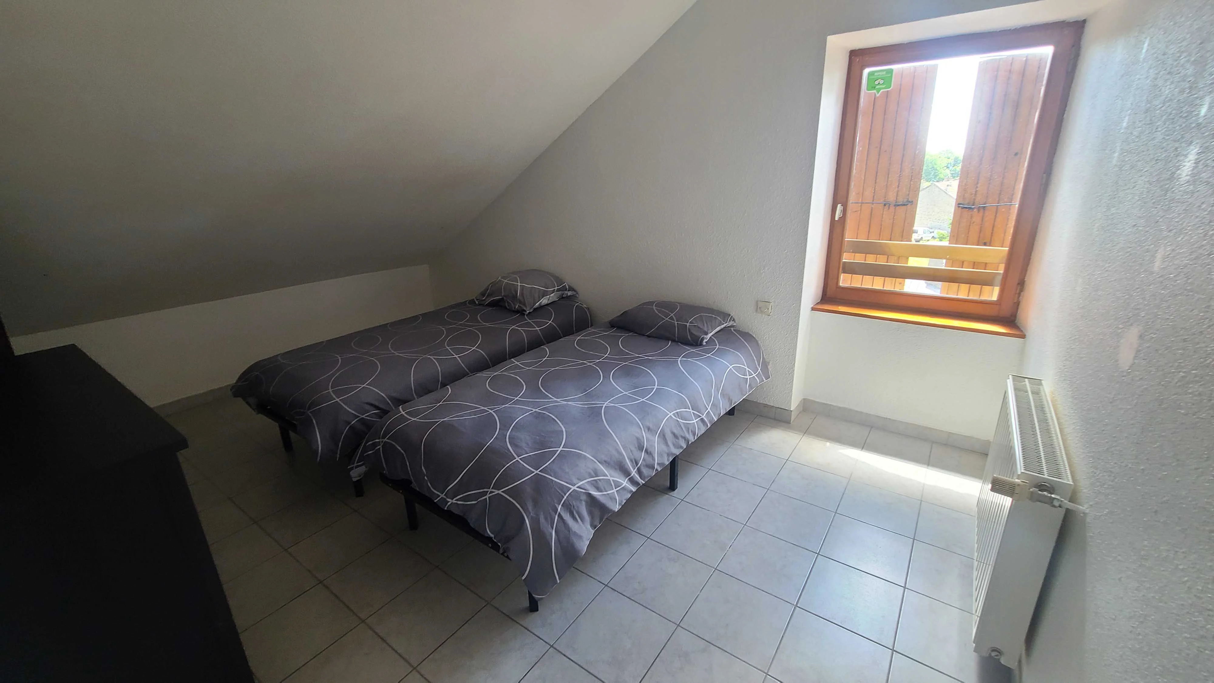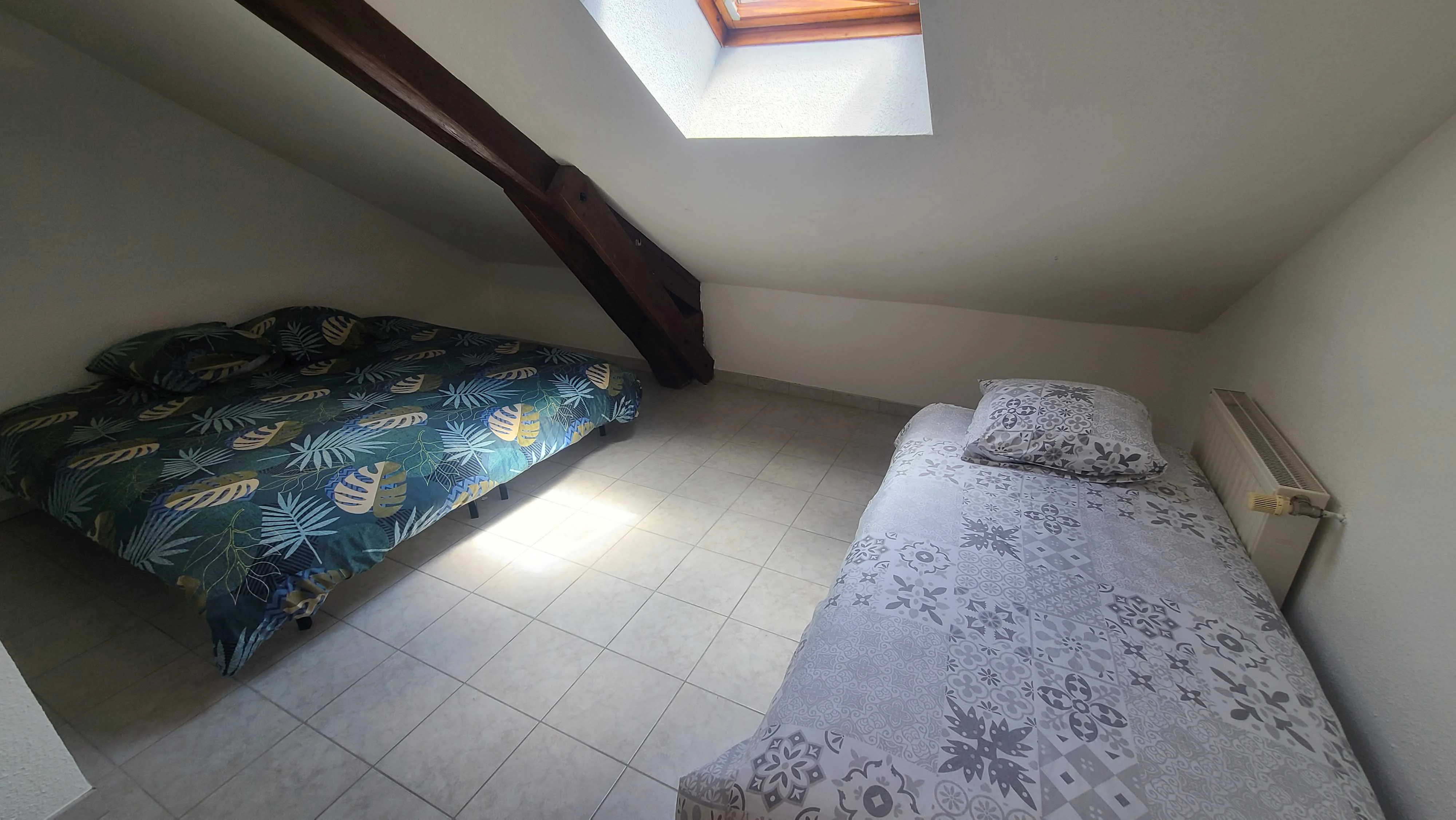 Appartement entier avec salle de bain privative. Chambre 1 : 1 grand lit double. Chambre 2 : 1 lit simple et 1 grand lit double. Chambre 3 : 2 lits simples. Salon : 2 canapés-lits. Télévision mise à disposition.