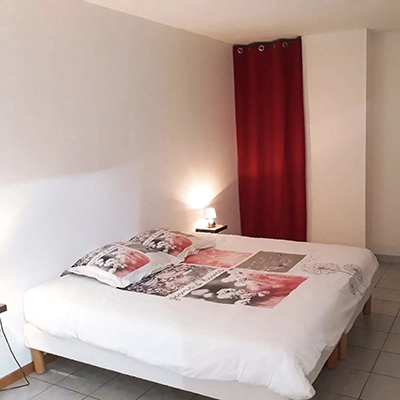 Chambre donnant sur la place du village, elle comprend un lit double et un lit simple (ou trois lit simple) ainsi qu’une salle de bain individuelle (douche). Télévision mise à disposition.