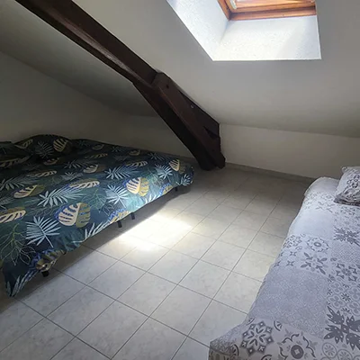 Appartement entier avec salle de bain privative. Chambre 1 : 1 grand lit double. Chambre 2 : 1 lit simple et 1 grand lit double. Chambre 3 : 2 lits simples. Salon : 2 canapés-lits. Télévision mise à disposition.